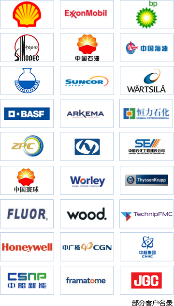 公司憑借強(qiáng)大的綜合實(shí)力獲得了國(guó)內(nèi)外眾多大型企業(yè)集團(tuán)的高度認(rèn)可,形成了良好的品牌效應(yīng)。公司是中石化、中石油、中海油、中化集團(tuán)、中核、中廣核、殼牌、??松梨?、英國(guó)石油、加拿大森科能源、巴斯夫、博萊克威奇、塞班、霍尼韋爾、法馬通、瓦錫蘭、蒂森克虜伯、福陸、日輝、德希尼布千代田等企業(yè)的合格供應(yīng)商。
